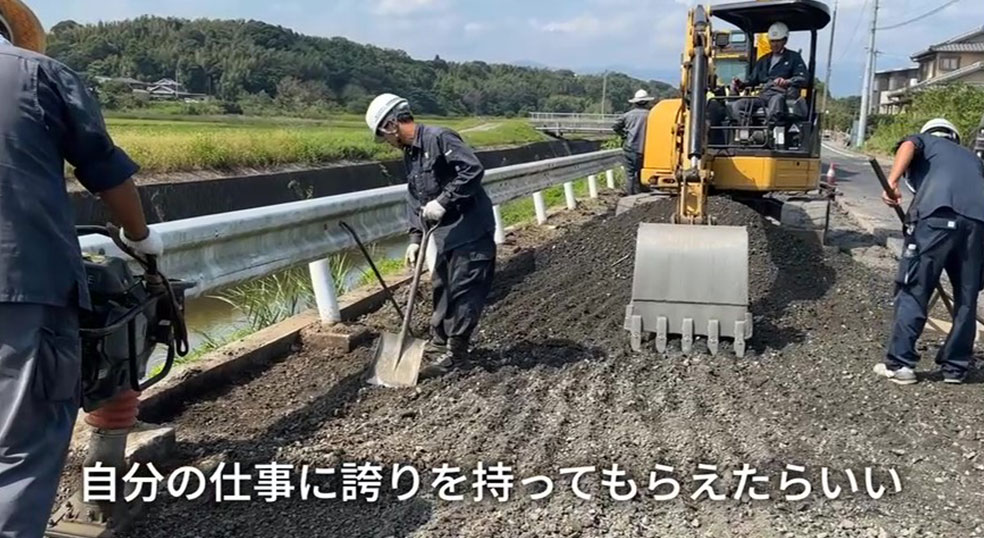 舗装工事の魅力は、形に残るものを作り上げていく達成感。地元地域への貢献度も高く、やりがいの大きい仕事ですよ!