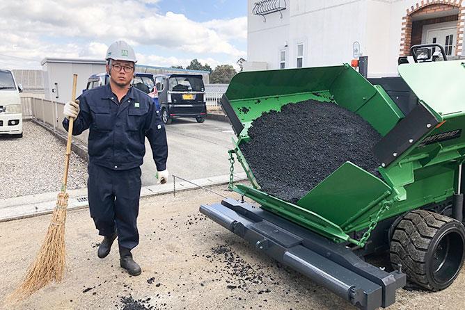 • 高温のアスファルトを扱うので、足元からの熱気が結構凄いですね。夏場は暑さとの勝負なんで、無理せず休憩入れながらやってます!