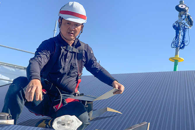 社長もよく冗談言って笑わせてくれますね。自分にとっては、「気軽に話せるお兄さん」みたいな感じかな。面白い人ですよ。最初に合った時から良い人だなという印象だったけど、実際一緒に仕事してみても優しくて接しやすい人でしたね。 - 屋根の上って傾斜があるので、最初は慣れるのに苦労しました。普通に歩くだけでも足が疲れたりしましたね。