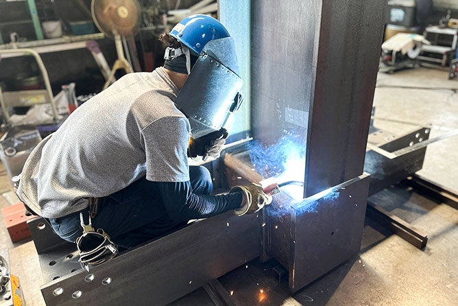 未経験スタートの方も大歓迎。初めは簡単な作業や溶接の練習をして、鉄骨加工の基礎を学んでいきましょう。