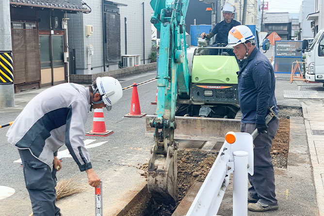 - この仕事は地面に穴を掘って配管作業を行うので、夏場に結構体力を消耗するのが大変なところかな。でも、続けるうちに少しずつ慣れてきました!