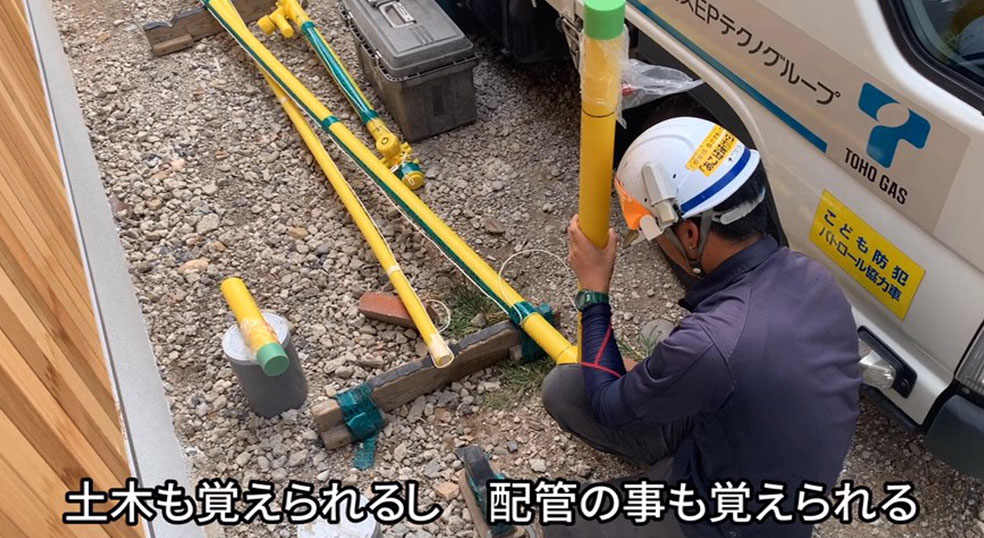 今後の目標は、ガスの配管に関わる作業を一から十まで全部自分でこなせるようなスキルを身に付けることです。早く一人前になって、いろんな現場で活躍していきたいですね!
