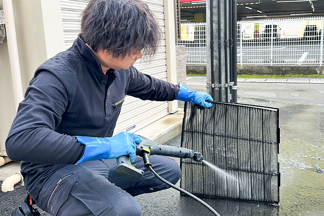 建物、エアコン、ダクトの清掃から、電気工事、設備の点検まで幅広い仕事内容があり、お客様の依頼も現場によって様々。覚えることは多いですが、興味のある仕事にどんどん挑戦できる面白さがあります!資格の取得も会社からサポートしてもらえますよ!