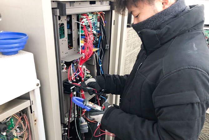 点検、清掃、電気工事など様々な作業があるので、まずは興味のある分野から徐々に教えていきます。順調に行けば、3年程度で一通りの仕事を習得できますよ!