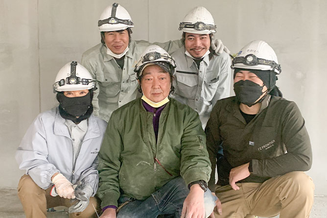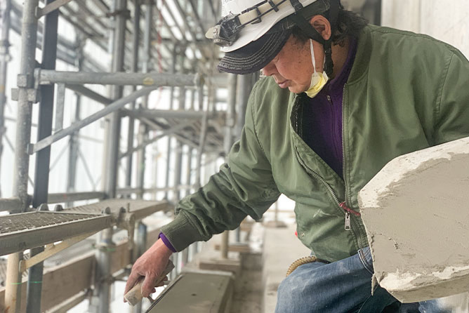 自分達の仕事が形になっていく達成感が、左官工事のやりがい。目に見える形で長年街に残るので、建物が完成した時の喜びも大きいですよ!