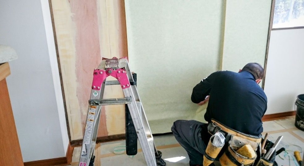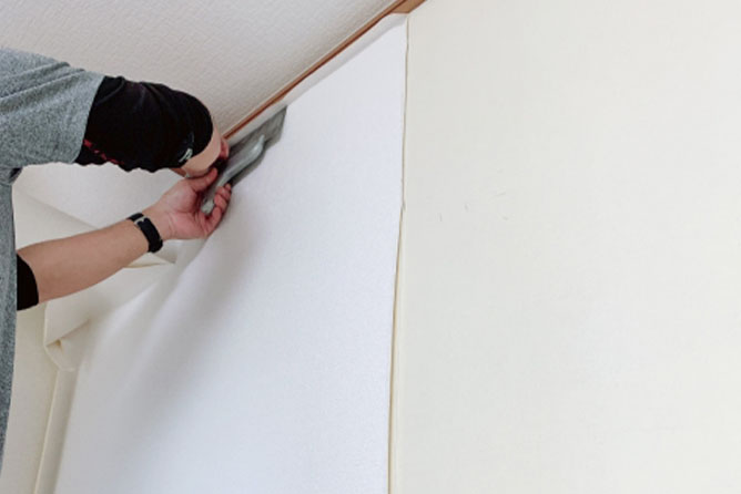 新人さんのフォローはかなり手厚いと思いますよ。従業員みんなで教えていこうっていうスタンスですね。分からないことがあっても、周りに聞きやすい雰囲気だと思います。 - 最初は先輩の手伝いから始めました。早く自分もクロス張ってみたくてソワソワしてたんですけど、実際やってみたらめちゃめちゃ難しかったですね!(笑)