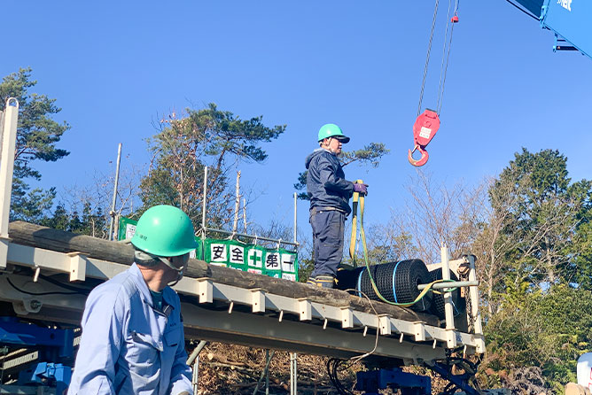 まずは、クレーンに荷物を取り付ける「玉掛け」の作業や、材料・道具の準備など補助的な仕事から挑戦しましょう。先輩が一から仕事を教えていくので、分からないことは気軽に聞いてください!