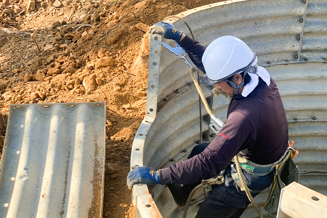 ベテランの先輩もいるので、現場で一緒に作業しながらいろんなことを教えてもらってますね。従業員どうしの間に壁がなくて働きやすいです!分からないことも気軽に聞ける雰囲気ですよ。 - 外作業だし、山の中で鉄塔基礎を作ったりすることもあるので環境に慣れるまでは少し大変かもしれないですね。天候に左右されることもあるし、夏場の暑さ対策、冬場の寒さ対策は必須です(笑)でも続ける中で少しずつ体力が付いてきましたよ!