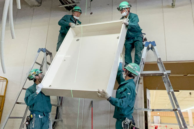 新築よりも改修の現場が多め。施設や工場の稼働日を避けた土日や夜間に工事が入ることもありますが、株式会社岩田電気では交代で代休を取ってもらうなど無理なく働ける工夫をしています!