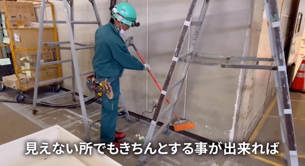 • この仕事は、時間内でどれだけ丁寧な仕事ができるかが勝負ですね。現場ではみんな集中して、メリハリを付けてやっています!お客さんが現場を見に来ても、ダラダラ作業してるよりもテキパキ動いてたほうが信用できると思うんですよ。そういう面でも、真剣に取り組む姿勢って大事だと思いますね。