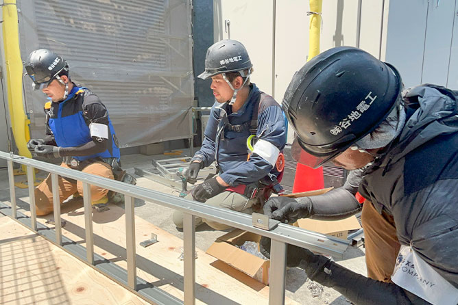 また自社の従業員だけでなく、他の業者さんとのコミュニケーションも大切にしています。現場では内装や建築、水道工事など、いろんな職種の職人さんと打ち合わせを行ったり、協力したりしながら作業を進めていきます。現場での経験を通して、技術だけでなくコミュニケーション能力も磨いていきましょう!