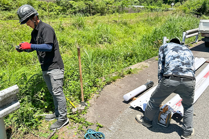株式会社マルケンではガードレールやフェンスの入れ替え、ブロック積みや街路灯の修繕など、現場の状況に応じて様々な作業を行うため、幅広い技術が身に付きます。飽きずに続けていける点も魅力ですよ!