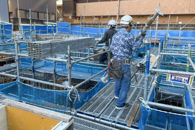 型枠工事のやりがいは、自分達の作業が形に残ること!完成に近づくにつれて現場の様子もどんどん変わっていくため、手応えを感じながら取り組むことができますよ!