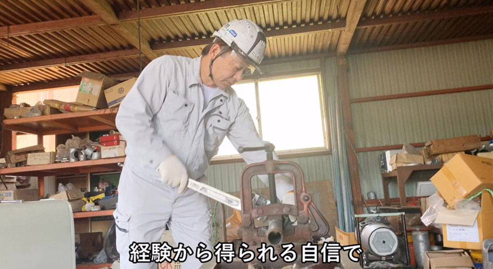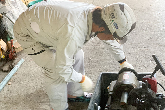 消火の際には水槽から水を吸い上げるため、スプリンクラー本体の設置だけでなく配管作業なども必要。溶接を含め、様々な技術が身に付きます。
