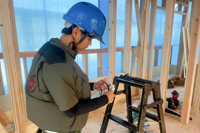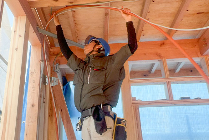 基礎を身に付けたら、比較的難易度の低い分譲住宅の電気工事から挑戦していきましょう。入社から1年を目途に分譲住宅の電気工事を一式マスターし、その後注文住宅の仕事にも挑戦。もちろん個人差はあるので、焦らず着実にスキルアップしていきましょう!