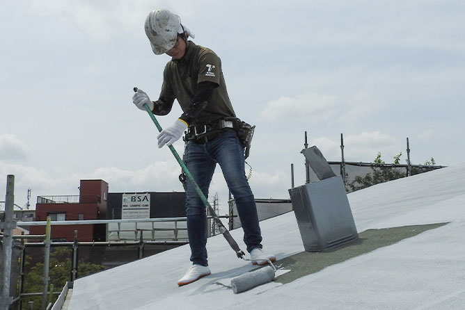 防水工事は、雨や風の浸食から建物を守るために欠かせない仕事。表面を加工する作業になるため、綺麗に仕上がると達成感がありますよ!