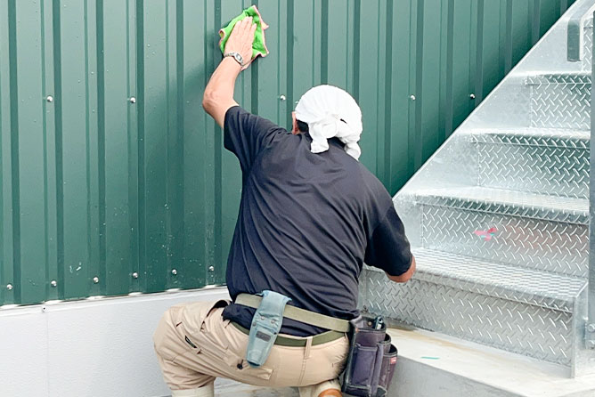 この仕事のやりがいは、何と言っても建物がピカピカに生まれ変わっていく達成感!変化が目に見えて分かるため、大きな達成感があります。