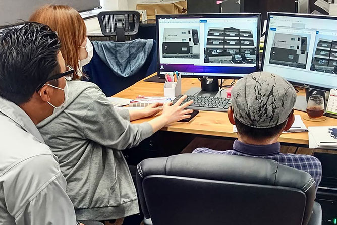 施工管理や現場作業員など、職種の違うスタッフとも連携していきます。それぞれ得意分野が違うため、お互いの知識や情報を共有することで工事全体がスムーズに進んでいきます!お客様との打ち合わせの中で分からないことが出てきたら、現場に詳しい施工管理や作業員にも相談してみましょう。
