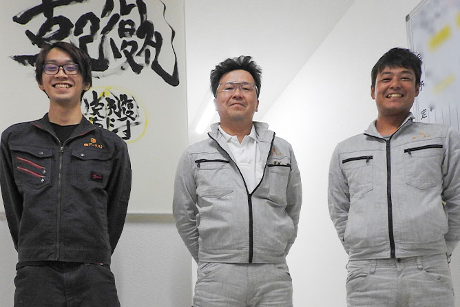 コテを使った左官の作業とかもあって難しいけど、先輩とペアで現場を回るので安心ですよ!僕も新人の頃、道具の使い方とか一から丁寧に教えてもらいました!