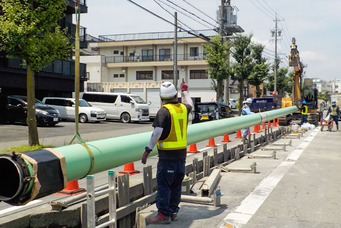 株式会社ティエヌテックが請け負う土木工事は、道路の下にガス管を配管して地域のインフラを支える仕事!