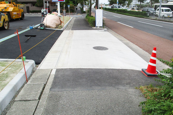 株式会社ジェイテックスでは一般土木工事の中でも、「乗り入れ工事」をメインに請け負っています。道路と敷地の間をコンクリートで舗装し、車が出入りしやすいゆるやかなスロープ状に整備していく工事です。