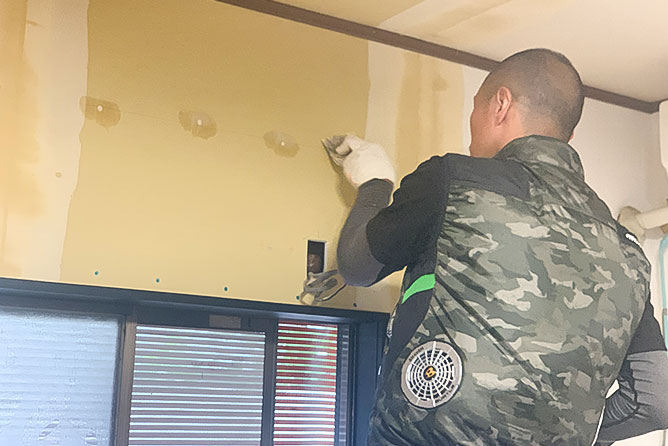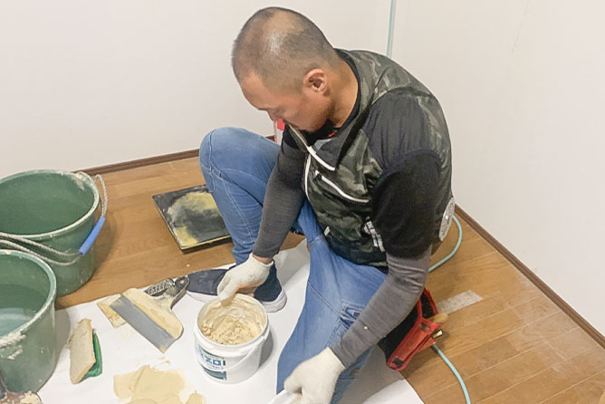 クロスを張ったり床を施工したりする内装工事」の仕事。