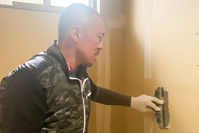 こだわってやった分、綺麗に仕上がるとめちゃめちゃ気持ち良いですよ! - 仕上げの工事なので、建物の見た目に大きく関わってくるところがこの仕事の難しさでもあり、面白さでもありますね。自分が満足できるだけじゃダメで、お客さんに喜んでもらえる仕事をしていくっていうのを大事にしてます。